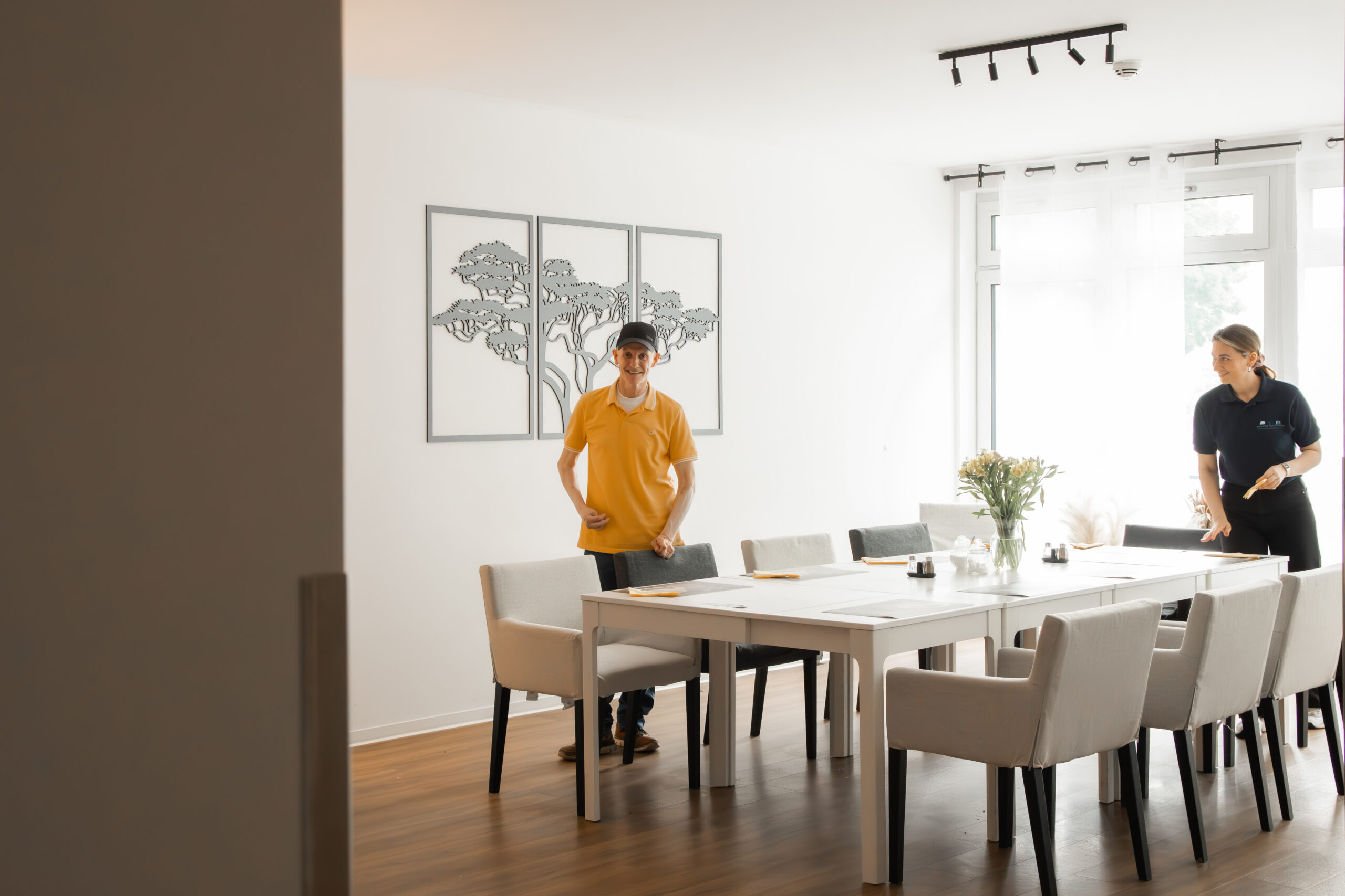 Erleben Sie Pflege in einer gemütlichen und stilvollen Umgebung. Unsere Wohngemeinschaften bieten große Fenster, geschmackvoll eingerichtete Aufenthaltsräume und hochwertige Echtholz-Böden aus Parkett und Hobeldielen. Hier fühlen Sie sich wie zu Hause, während wir uns mit Hingabe um Ihr Wohlbefinden kümmern.